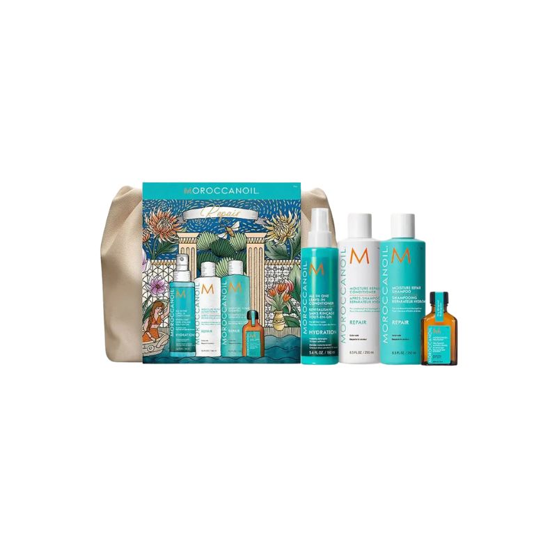 Descubre el poder renovador del Kit reparador Hidratante Moroccanoil. Incluye shampoo y acondicionador de 250 ml para limpiar y nutrir profundamente, un leave-in hidratante todo en uno que facilita el peinado y protege tu cabello, y un tratamiento original de 25 ml que revitaliza y sella la hidratación. Perfecto para devolver suavidad, brillo y salud a tu melena desde la primera aplicación. Ideal para cabello seco que necesita un cuidado completo y efectivo. Lleva tu rutina al siguiente nivel con este kit profesional y transforma tu cabello día a día.